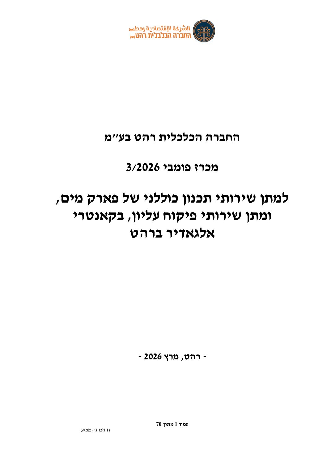 מכרז פומבי 3/2026 למתן שירותי תכנון כוללני של פארק מים, ומתן שירותי פיקוח עליון, בקאנטרי אלגאדיר ברהט